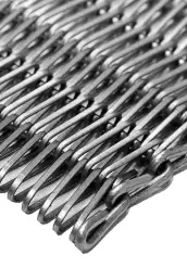 Esteira gratex fornece uma malha mais fechada, com resistência maior do que a Malha balanceada.Esta esteira geralmente é selecionada para manuseio de Transporte de pequenas peças e para transportes de fundição.